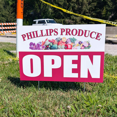 Our Indianapolis yard signs are printed on durable corrugated plastic (coroplast) and designed to withstand Indiana weather—perfect for short-term promotions or long-term outdoor use.